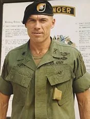 AWARDS: Silver Star; Bronze Star; Army Commendation with V, Purple Hearts (3 awards); Air Medal (2 awards); VN Cross of Gallantry; VN Wound (3 awards); VN Service; VN Civil Action; VN Campaign (3 stars); Army Service Ribbon; Overseas Service Ribbon; Cold War Medal; National Guard Service Medal (2 awards); National Defense Medal; Combat Infantry Badge (CIB); Combat Assault Badge; LRRP Tab, Airmobile Tab; Presidential Valorous Unit; Presidential Unit Citation; VN Presidential Unit; VN Valorous Unit; VN Cross of Gallantry Unit Citation; NJ National Guard Meritorious Service Ribbon; NJ Distinguished Service Medal; NJ Honorary Service Medal.